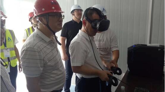 7月24日,如皋市委常委、宣傳部部長高峰、市教育局相關科室負責人,在集團總裁沈衛東的陪同下,頂著烈日深入施工現場,查看并詳細了解學校教學樓、餐廳、報告廳等各個工程項目施工進度情況,聽取沈衛東對工程進展的詳細匯報,觀看項目BIM視頻匯報。高部長建議學校外觀顏色設計要考慮與周圍建筑環境的協調性。隨后,高部長親自操作安全VR設備并詢問交底情況,他對安全VR體驗非常認可,要求作為我市第一個建立VR體驗館的工地,要充分利用VR體驗館,讓每個工人都能深刻了解安全事故的危害,提高安全警惕性,從而更好地推動安全生產,并建議設立開放日,讓全市建筑企業觀摩。