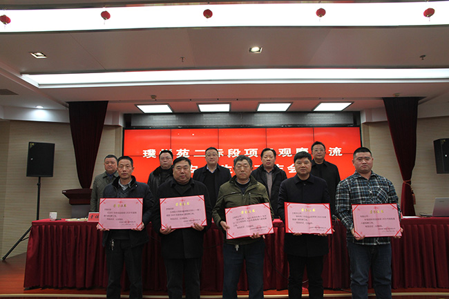 吳曉風宣讀“2019年度南通六建觀摩工地”表彰決定,沈衛東、張彬、吳曉風、于厥智、章祥余分別為五位獲獎者代表頒發榮譽證書及獎金。
